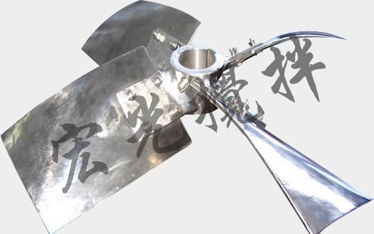 ①旋槳式攪拌器 由2~3片推進式螺旋槳葉構成(圖2),工作轉速較高,葉片